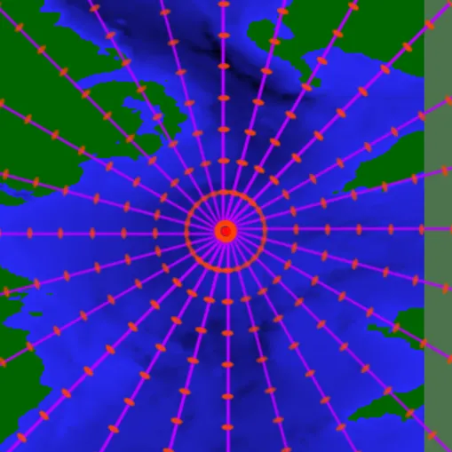 - Interpolation of sound speed within SSPs is inverse distance weighting.