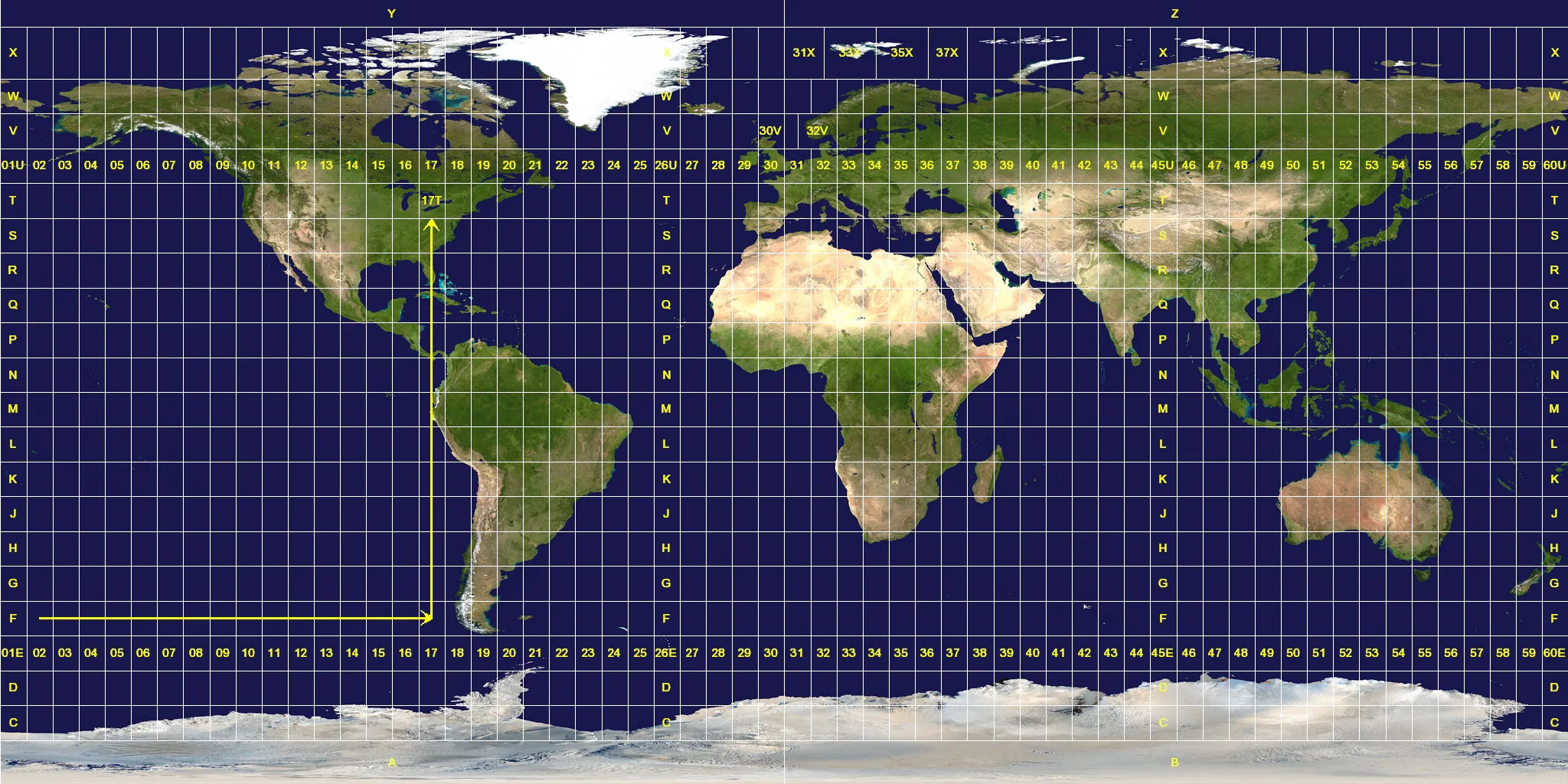 Note that some official UTM zones don’t follow this grid, around Norway and Svalbard. dBSea ignores this and calculates zones as if the grid was not distorted in those areas. In addition zones A, B, Y and Z are not covered.